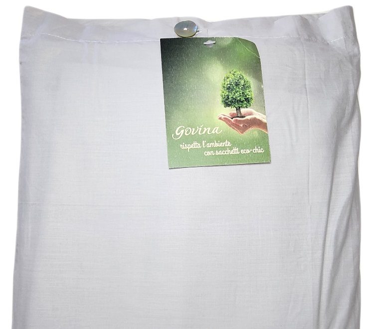 La confezione eco-friendly è un pratico sacchetto in cotone che può essere utilizzato come cuscino d’arredo o come porta biancheria.